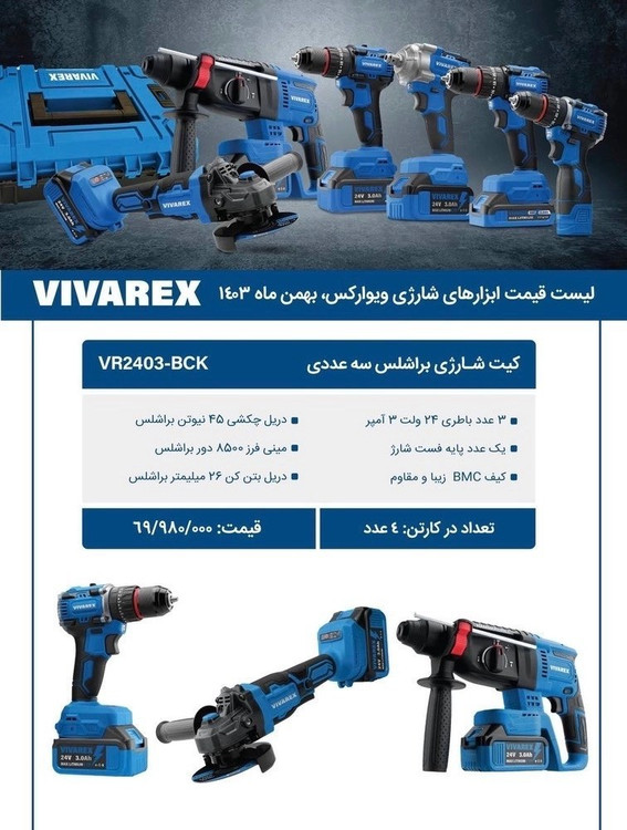 کیت شارژی براشلس 3 عددی ویوارکس VR2403-BCK ا12 ماه گارانتی معتبر