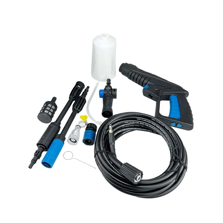 گان , لنس ، شلنگ فشار قوی , دو عدد اتصالات ورودی, فیلتر بزرگ ، مخزن کف پاش