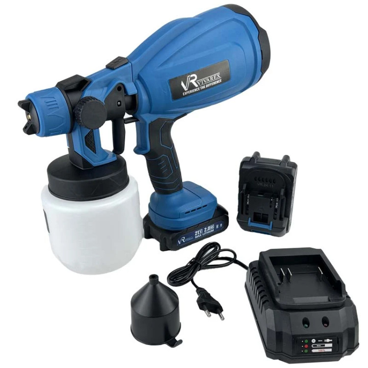 پیستوله شارژی ویوارکس مدل VR2116-SG دارای سه نوع حالت پاشش عمودی ، افقی و دایره ای و بدنه ارگونومیک سبک و دکمه قابل تنظیم جریان اسپری، قابلیت حمل بسیار آسان همچنین امکان پخش یکدست رنگ بر روی سطوح را دارد. این پیستوله شارژی با سرعت گردش موتور قدرتمند 3800 دور در دقیقه و حداکثر جریان پاشش 500-800 میلی لیتر میباشد. پیستوله شارژی ویوارکس فاقد محدودیت از نظر نیاز به دوشاخه برق و دارای عمر باتری طولانی همراه با پایه شارژر فست و 2 عدد باطری 21 ولت 2 آمپر است. طراحی منحصر به فرد ارگونومیک دارد که باعث جلوگیری از خستگی هنگام کار به صورت طولانی مدت و راحتی کاربر میباشد. نازل و مخزن به راحتی از روی پیستوله بازوبسته میشود و امکان تمیز کردن دارد که یکی از ویژگیهای این پیستوله شارژی میباشد.