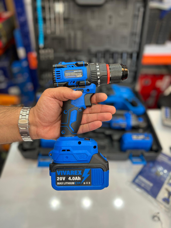 یک عدد دریل شارژی براشلس: گشتاور 45 نیوتن، سه نظام فلزی، دو سرعته، چکشی دار