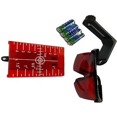 اقلام همراه کالا: براکت. آشکارساز - عینک ایمنی - کیف برزنتی و CD آموزش کاربری - 4 عدد باطری