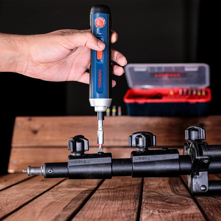 دو چراغ LED روی سر این پیچگوشتی قلمی 3/6 ولتی توسن تعبیه شده است که محیطهای کمنور را روشن میسازند. کلید چپگرد و راستگردی روی بدنه وجود دارد و کلیدی دیگر که توسط آن میتوان گشتاور را در 4 حالت تنظیم کرد. نوع ابزارگیر این دستگاه 1/4 اینچ است. همراه با آن 24 بیت 25 میلیمتری و یک نگهدارندۀ بیت 50 میلیمتری ارائه میشود که بتوانید انواع پیچ را بازوبسته کنید. کیف حملونقل مقاوم این ابزار هم جابهجایی و نگهداری از دستگاه و لوازم جانبی آن را راحت ساخته است.
